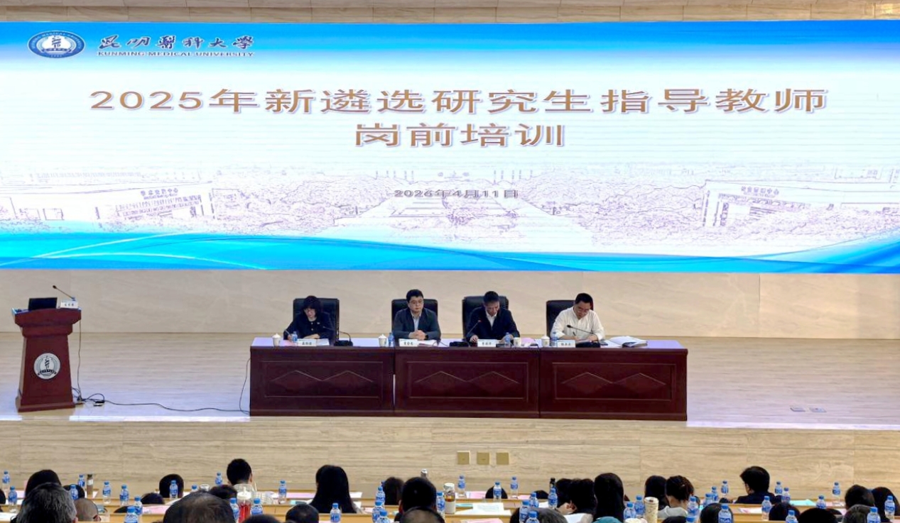 4月11日,昆明医科大学2025年新遴选研究生指导教师岗前培训会暨研究生管理干部培训会在呈贡校区举行,学校党委常委、副校长李利华出席并作动员讲话,北京大学研究员、全国医学专业学位研究生教育指导委员会秘书处办公室主任贾金忠到会指导并作专题培训。学校2025年度新遴选认定的研究生指导教师、二级培养单位管理人员和研究生处(院)有关人员等参会。