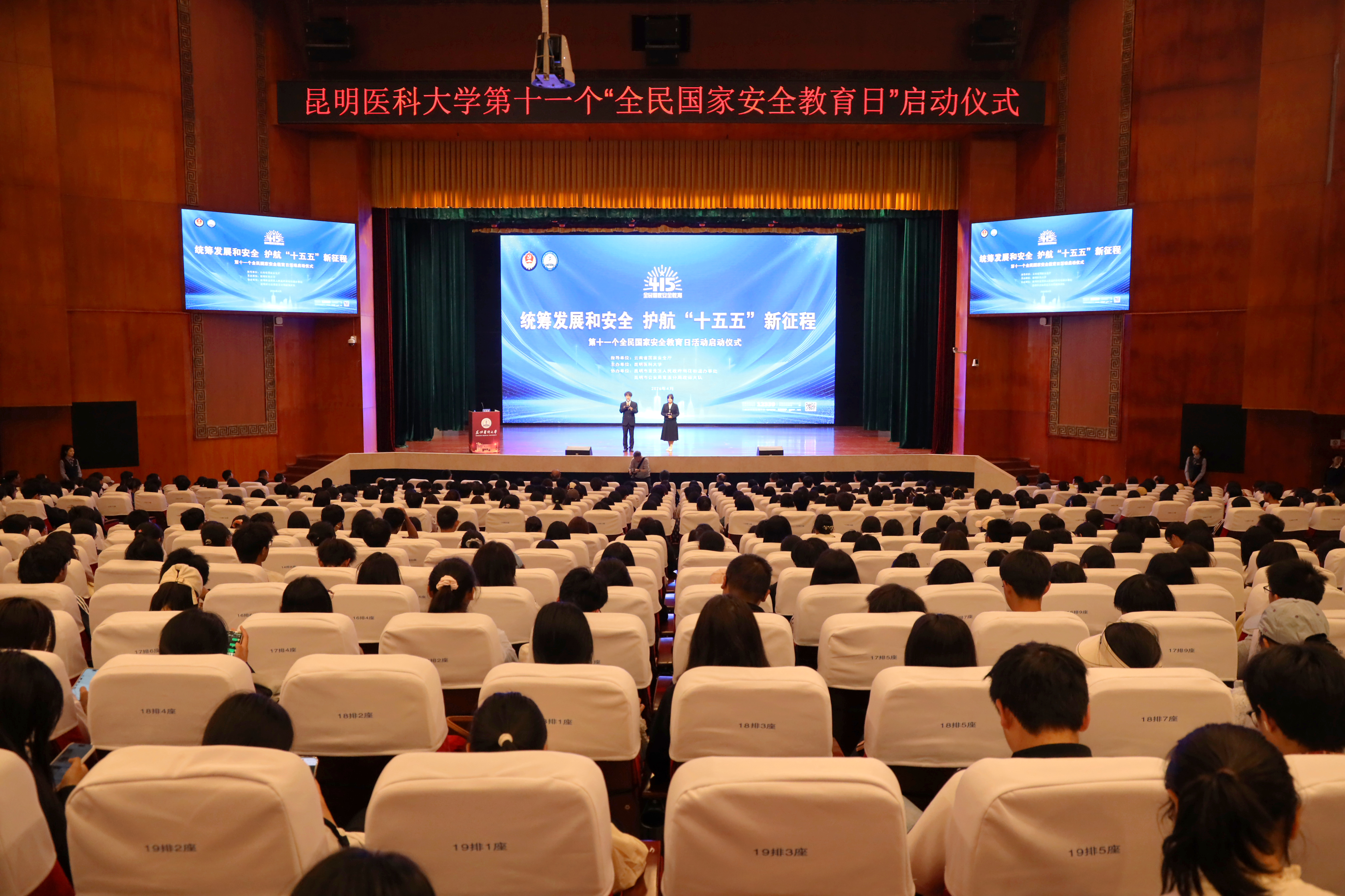4月15日,昆明医科大学第十一个全民国家安全教育日启动仪式在呈贡校区举办。本次活动以“统筹发展和安全 护航‘十五五’新征程”为主题,由云南省国家安全厅指导,学校联合属地街道办事处、公安部门共同开展。云南省国家安全厅相关负责人,学校党委副书记徐绍琼,党委常委、副校长吴红明出席仪式,1200余名师生代表现场参与。