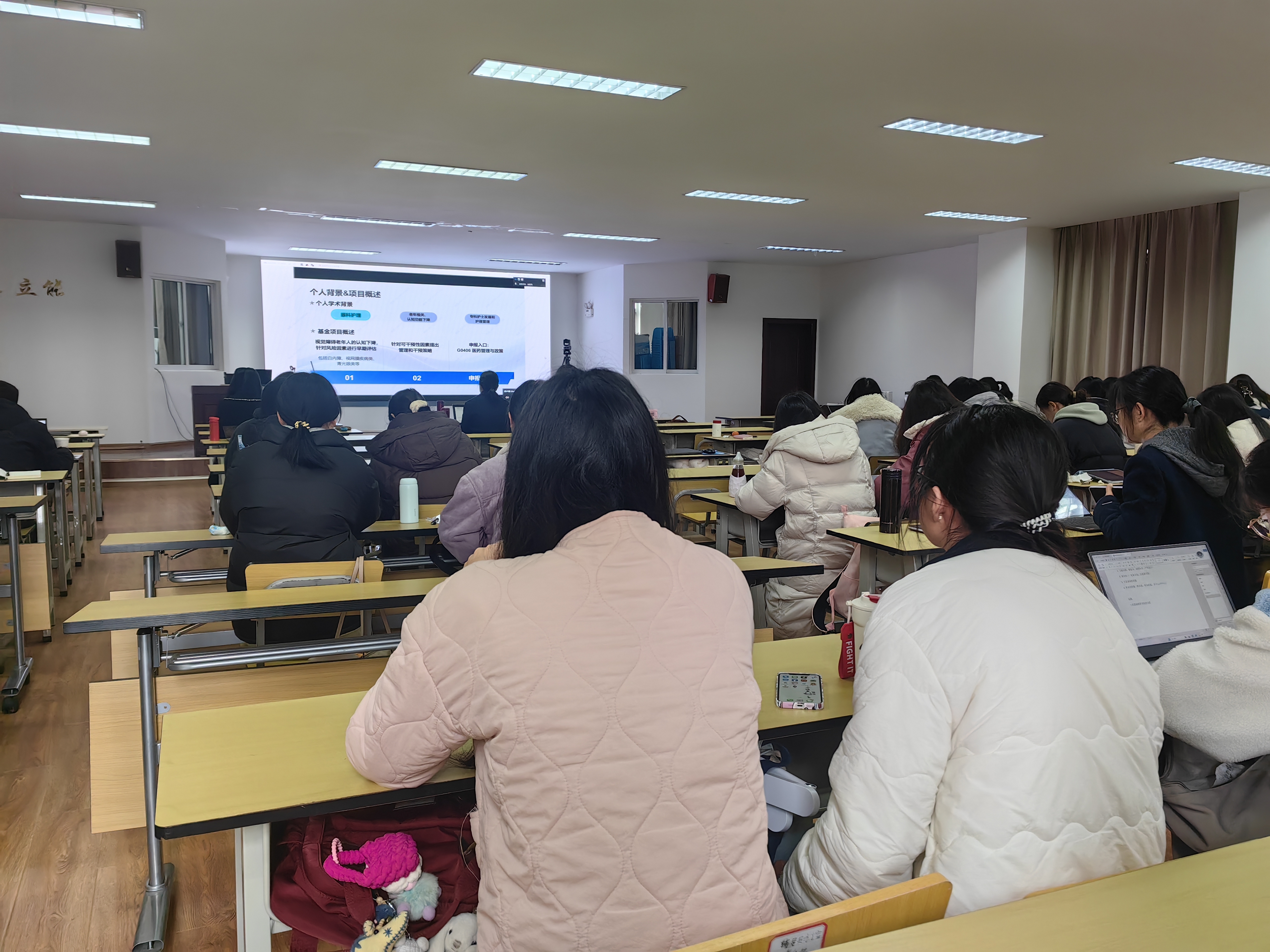 四位学者分别作了题为《赋能社区,主动先行——以人人主动健康开展社区健康科普实践活动为例》《国家级科研课题申报经验分享》《答案写在时间里:关于坚持和思考》《国家自然科学基金管理口青年项目申报经验分享》的专题讲座。