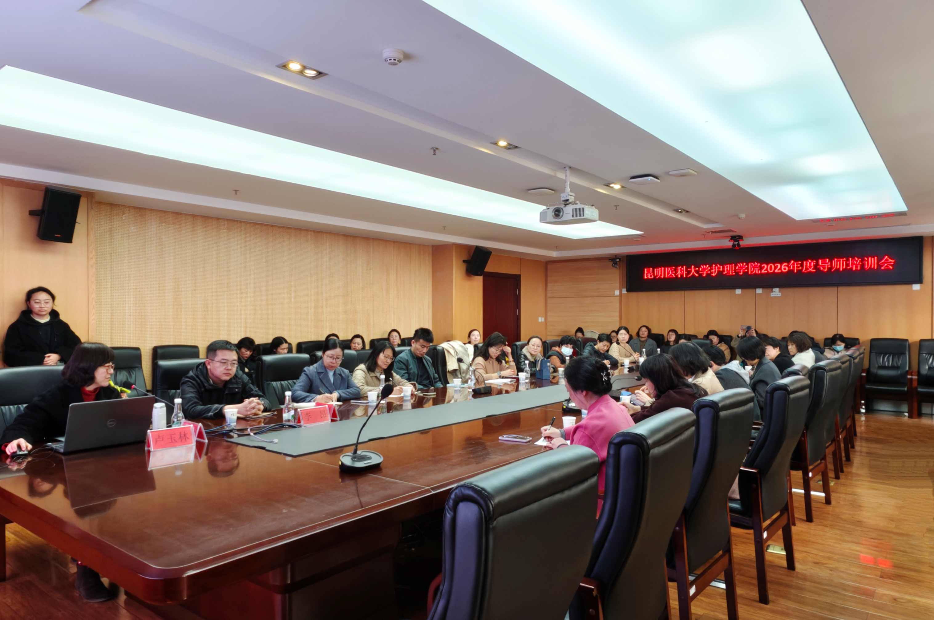 为深入贯彻落实新时代教师队伍建设要求,全面提升研究生指导教师队伍的德才素养与育人本领,2月6日,护理学院在昆明医科大学第三附属医院举行2026年度研究生指导教师专题培训。培训由护理学院院长卢玉林主持,护理学科70余名博、硕士研究生指导教师参训。