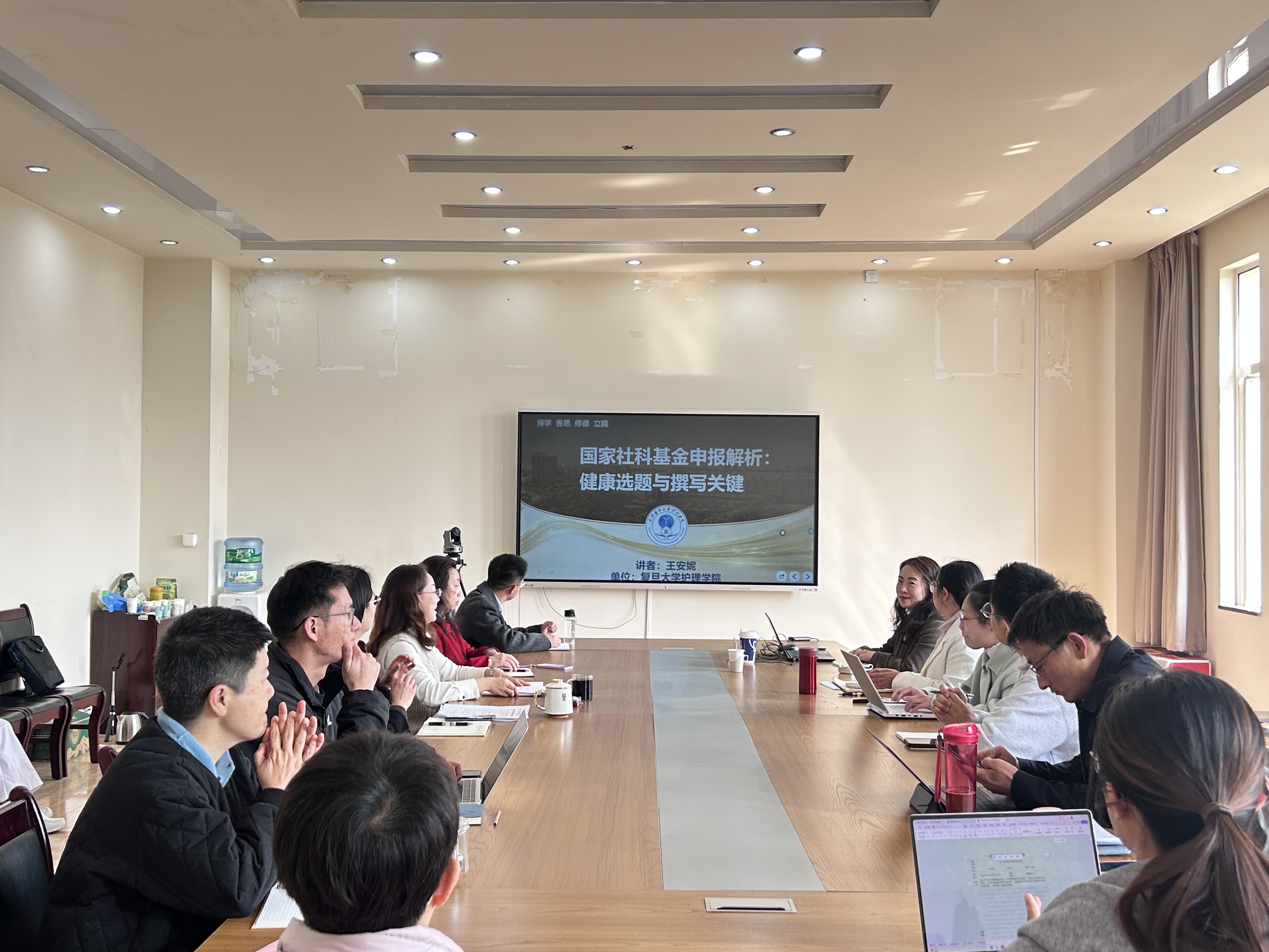 本次培训以《国家社科基金申报解析:健康选题与撰写关键》为题,特邀昆明医科大学研究生院副院长(挂职)、复旦大学护理学院副教授王安妮作专题讲座。讲座解读了国家社会科学基金各类项目的资助情况及申报流程,重点从护理学在社科相关领域中的选题凝练、标书撰写的核心要点及注意事项等方面进行了全方位讲解和指导。