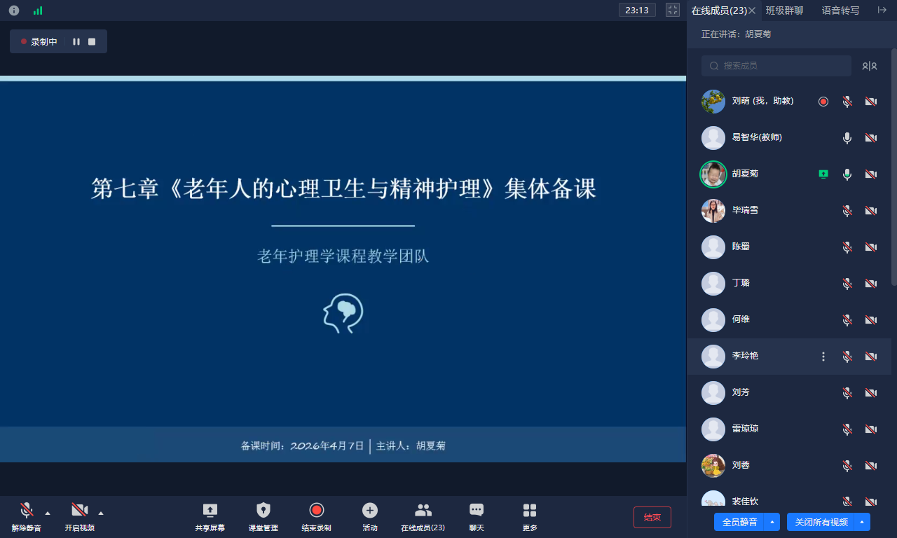 《老年护理学》多院校联合虚拟教研室集体备课活动在护理学院举办