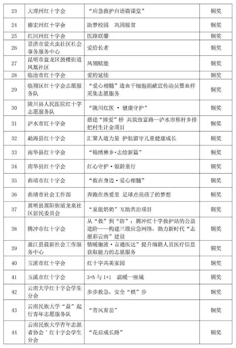 2025年11月11日,由云南省红十字会联合中共云南省委社会工作部、云南省卫生健康委员会、共青团云南省委主办,云南省红十字人道资源动员中心、云南省红十字基金会、云南省志愿服务联合会和云南省志愿者协会承办的第六届云南省红十字公益项目赛在昆明落下帷幕。我校《“生命续航,让爱相‘髓’”——医学院校助力造血干细胞捐献“启航”行动计划》《“蒲公英计划”——云南乡村儿童成长赋能行动》2个项目参赛并获金奖,取得我校在此项赛事的最好成绩,获金奖项目数居全省首位。