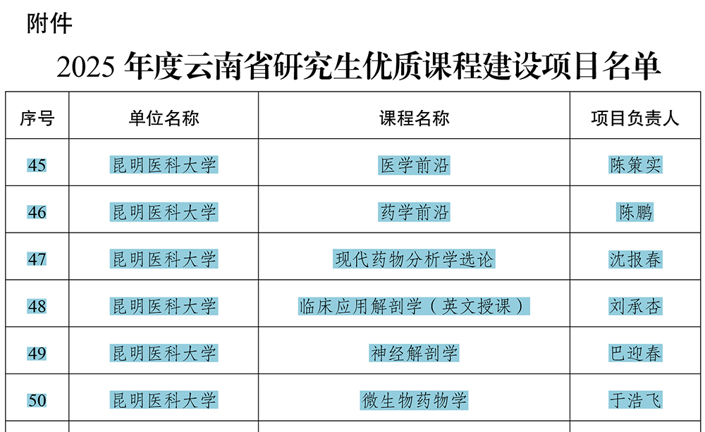 我院承办的“医学前沿”课程入选2025年度云南省研究生优质课